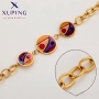 Această brățară Xuping te va cuceri prin designul său vibrant și artistic, o adevărată declarație de stil. Piesa centrală a brățării este formată dintr-o succesiune de trei elemente rotunde, tip pandantiv, inserate armonios într-un lanț clasic, cu zale ovale, masive. Fiecare element rotund are un diametru de 15mm și este decorat cu un model abstract, ce combină nuanțe de mov, portocaliu și roșu, adăugând o notă de originalitate și veselie. Lanțul robust se încheie cu o carabină sigură și un lanț extensibil, oferind flexibilitate în ajustarea mărimii. Brățara este placată cu aur, garantând o strălucire de lungă durată și o rezistență deosebită la factorii externi. Această bijuterie nu oxidează, păstrându-și aspectul impecabil în timp. Pentru a asigura calitatea și durabilitatea, clienții primesc un certificat de garanție împotriva oxidării. Perfectă pentru a adăuga o pată de culoare și personalitate oricărei ținute.